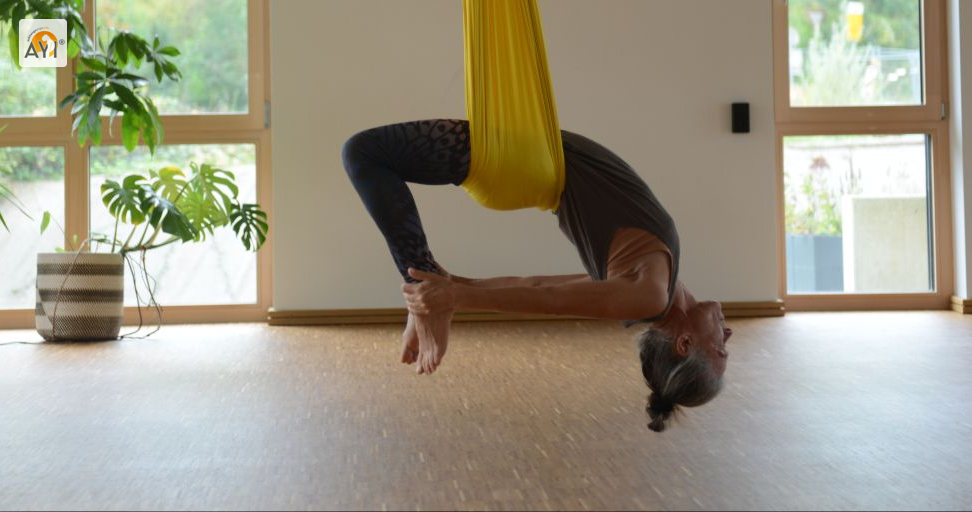 Voraussetzung ist die Teilnahme an einem Termin im Kurs „Aerial Beginner“ oder bereits vorhandene Erfahrung im Aerial Yoga.