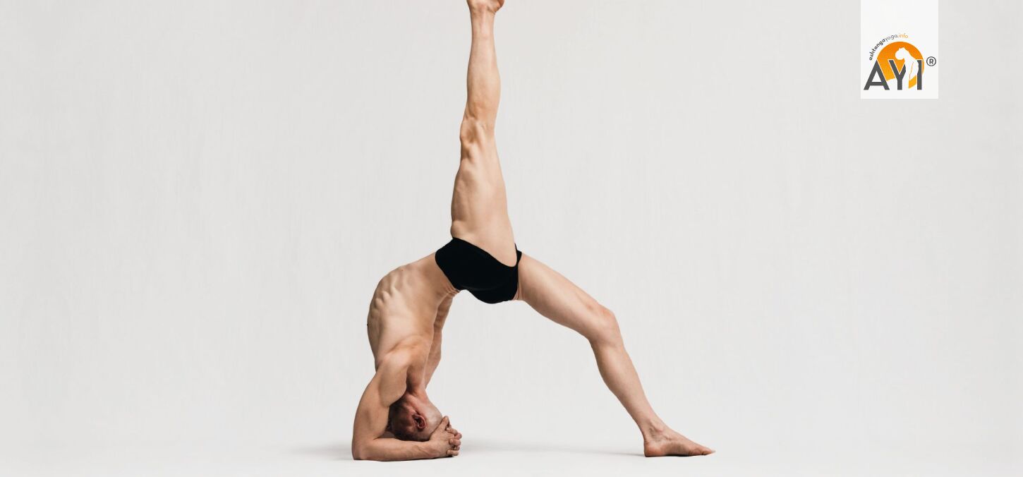 Effect: Eka Pāda Viparīta Daṇḍāsana deepens the work from the previous posture and adds a one-leg logic: you train axial stability, a thoracic backbend, and powerful load distribution through the forearms, scapular control, and the grounded leg. Done well, it creates a large breathing space in the chest and a very clear sense of center of gravity; done poorly, the load quickly shifts into the neck, lumbar spine, or the shoulder joint