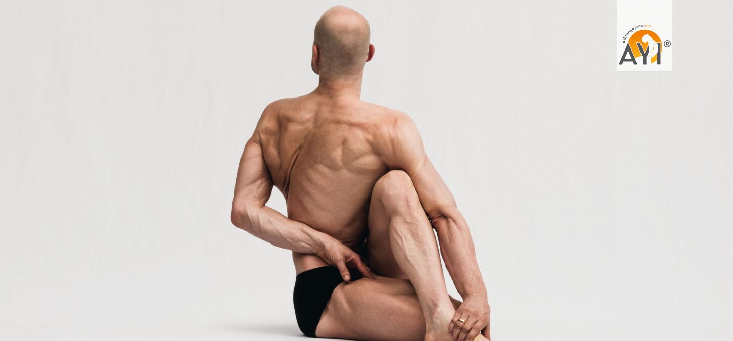 Effect: Pūrṇa Matsyendrāsana is a deep rotation that primarily mobilizes the thoracic spine and ribs while requiring stable work from the hip and gluteal muscles. When taught well it improves rotational capacity, upright posture, and breathing space—done poorly it quickly becomes a “strain from the lower back,” so: rotate mainly through the rib cage, keep the pelvis steady.