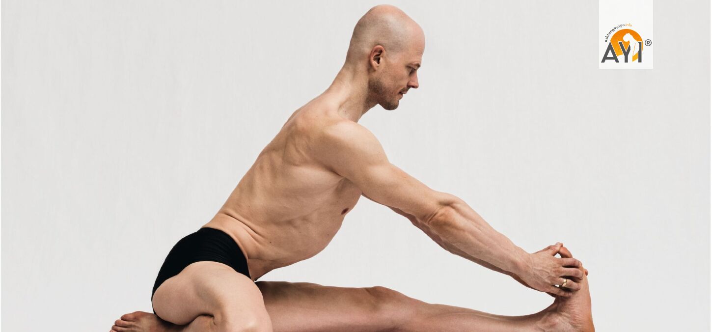 Tip: Turning the foot as in Jānu Śīrṣāsana C can feel “dangerous” at first. Start with an easier entry: place the right foot from behind against the pelvis with the toes pointing backward—similar to a hurdler position. Then you can slide the pelvis forward onto the heel in a controlled way.