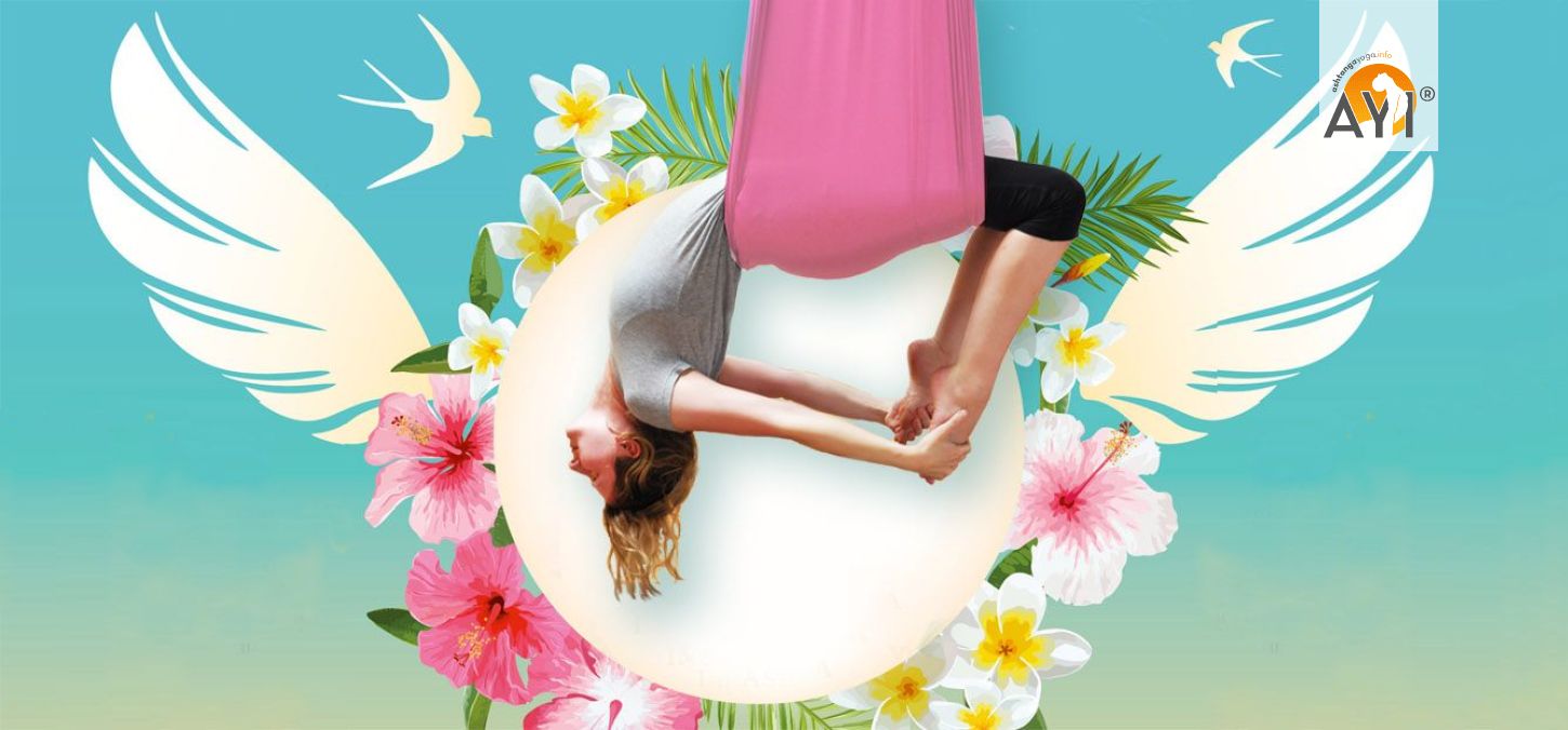 On 9 July 2016 it will finally be the big day: we will not only celebrate the AYI® summer party but also offer you the opportunity to practice yoga, try new things, experiment, have fun, enjoy delicious culinary highlights.... At the same time, the new colorful yoga hammocks will be set up for the first time in the AYI® practice room. With their help, we will "take off" together, discover unimagined heights and experience the ease and lightness of Aerial Yoga.