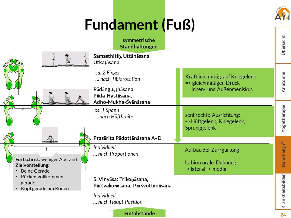 Hilfen für eine bewusste Ausrichtung der Füße und aktive Beinachse in der Yogapraxis.