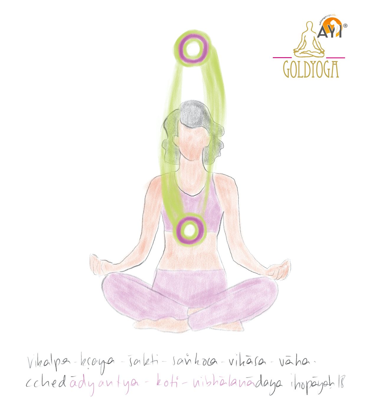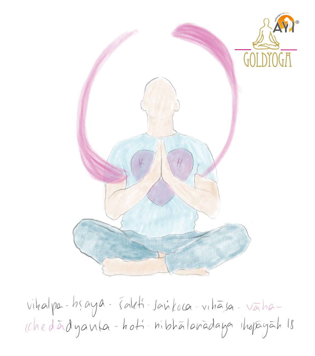 - Atme vom Herzpunkt (hrdayam) vertikal den Kanal nach oben aus