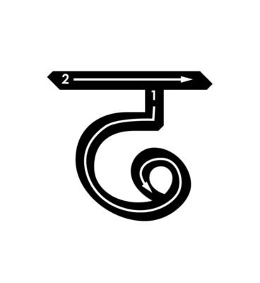 - Draw a short, vertical line downwards followed by an anticlockwise bow with a small circle at the end.